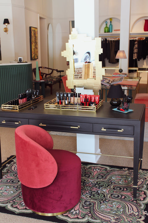 Originally founded in English Village of Birmingham, The Atelier moved to Mountain Brook Village in the Fall of 2024, continuing its tradition of offering a meticulously curated selection of clothing, skincare, cosmetics, and accessories.Â